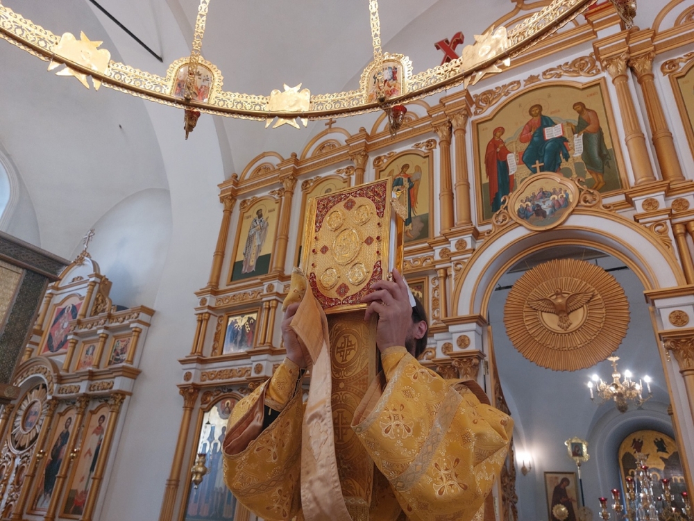 После чтения Евангельского отрывка праздничного дня молящихся помазали освященным елеем.