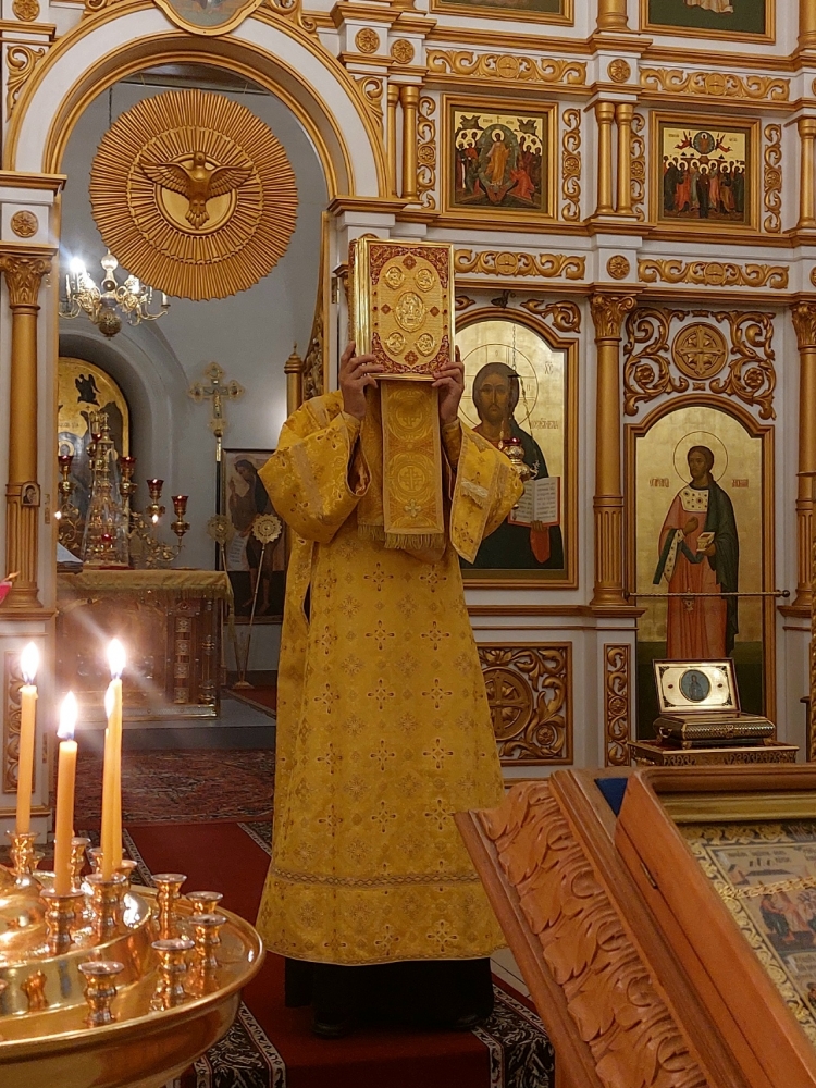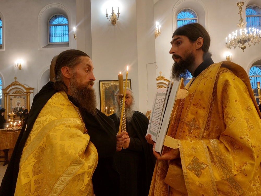 Богослужение совершил иеромонах Варсонофий (Петрушев) в сослужении иеромонаха Савватия (Змеева) и иеродиакона Мелетия (Гришина).