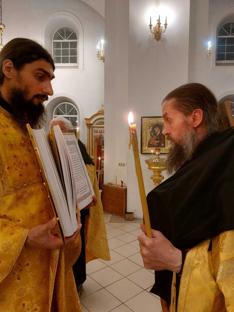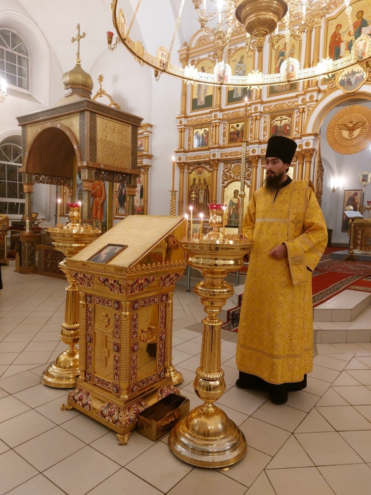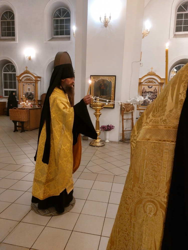 Богослужение совершил иеромонах Варсонофий (Петрушев) в сослужении иеромонаха Савватия (Змеева) и иеродиакона Мелетия (Гришина).