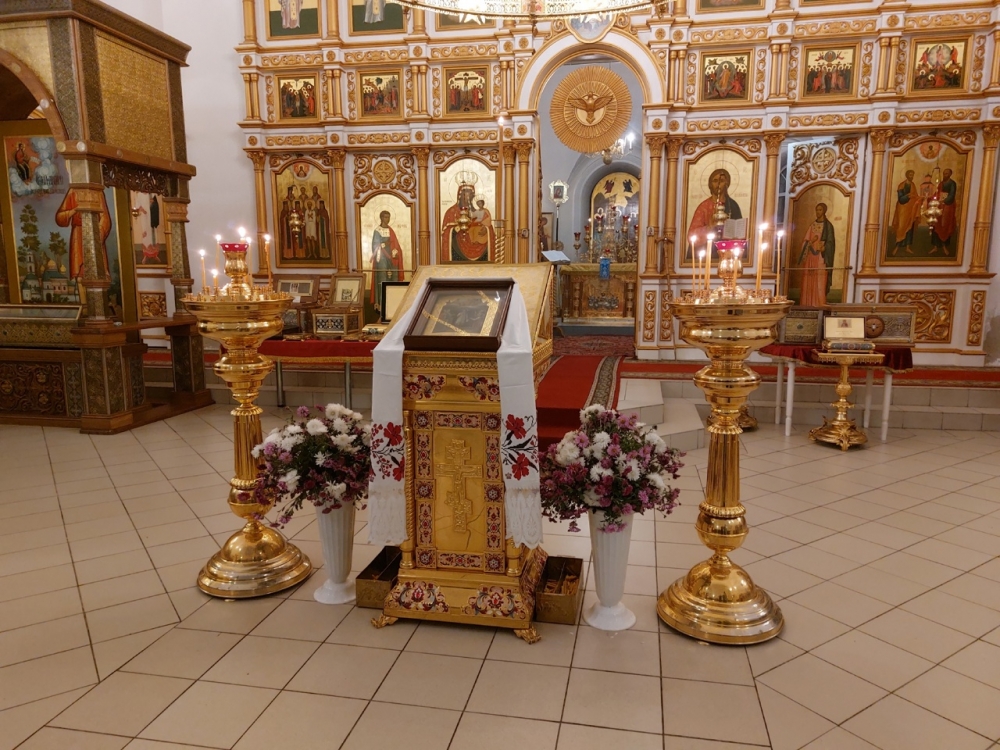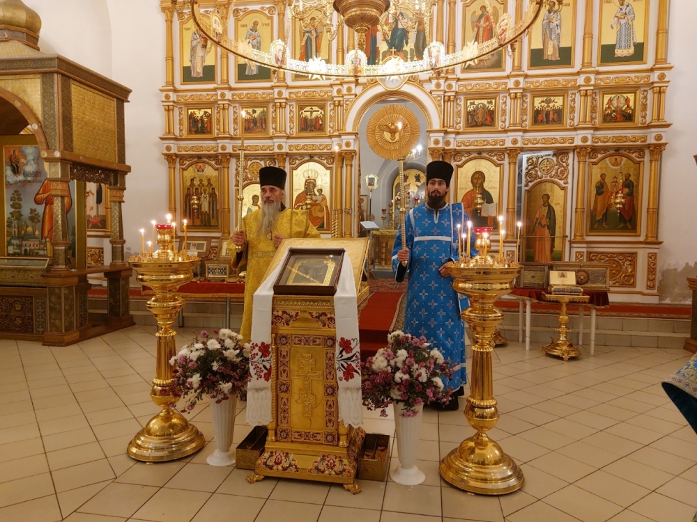 Богослужение совершил иеромонах Варсонофий (Петрушев) в сослужении иеромонаха Савватия (Змеева), иеродиакона Мелетия (Гришина) и иеродиакона Григория (Фонского)