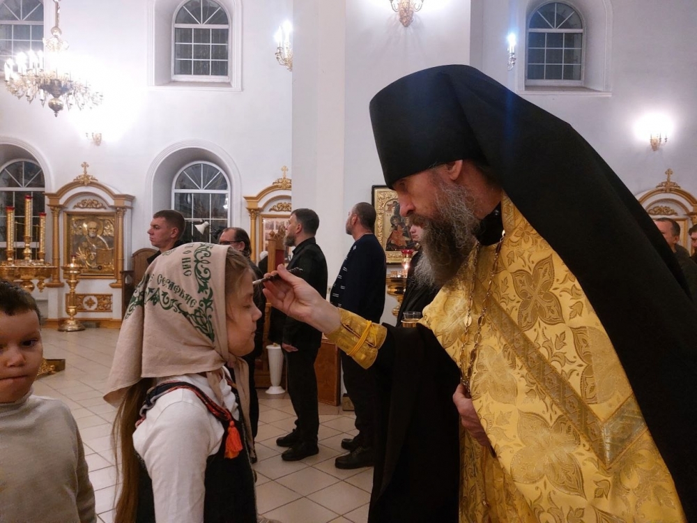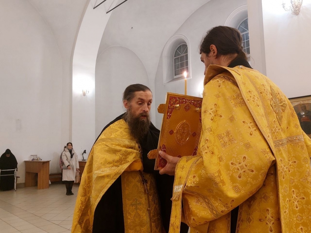 Богослужение совершил иеромонах Варсонофий (Петрушев) в сослужении иеромонаха Савватия (Змеева) и иеродиакона Мелетия (Гришина).