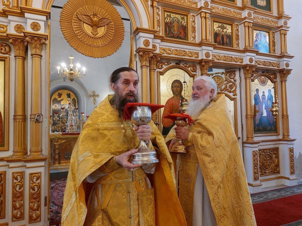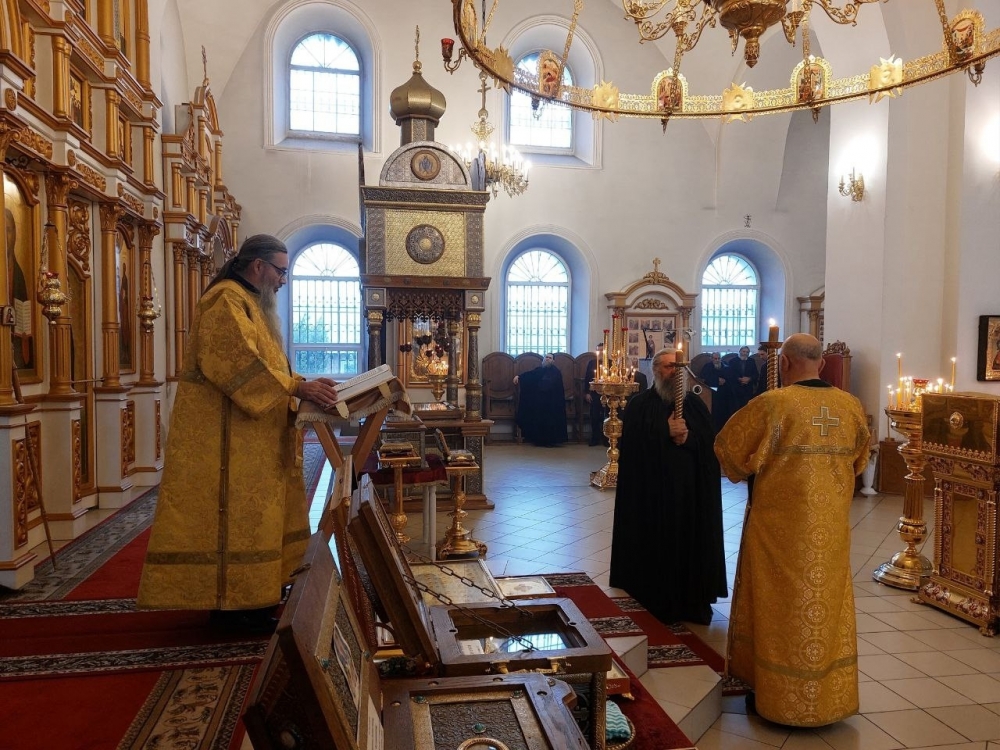 Богослужение совершил иеромонах Варсонофий (Петрушев) в сослужении иеромонаха Савватия (Змеева) и иеродиакона Григория (Фонского).