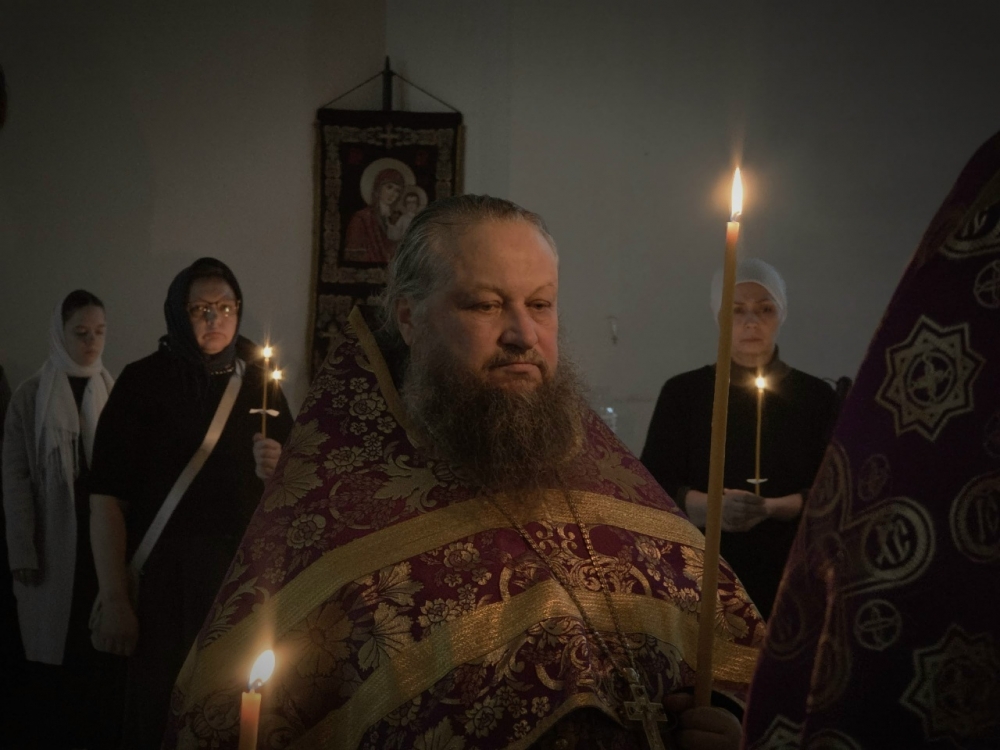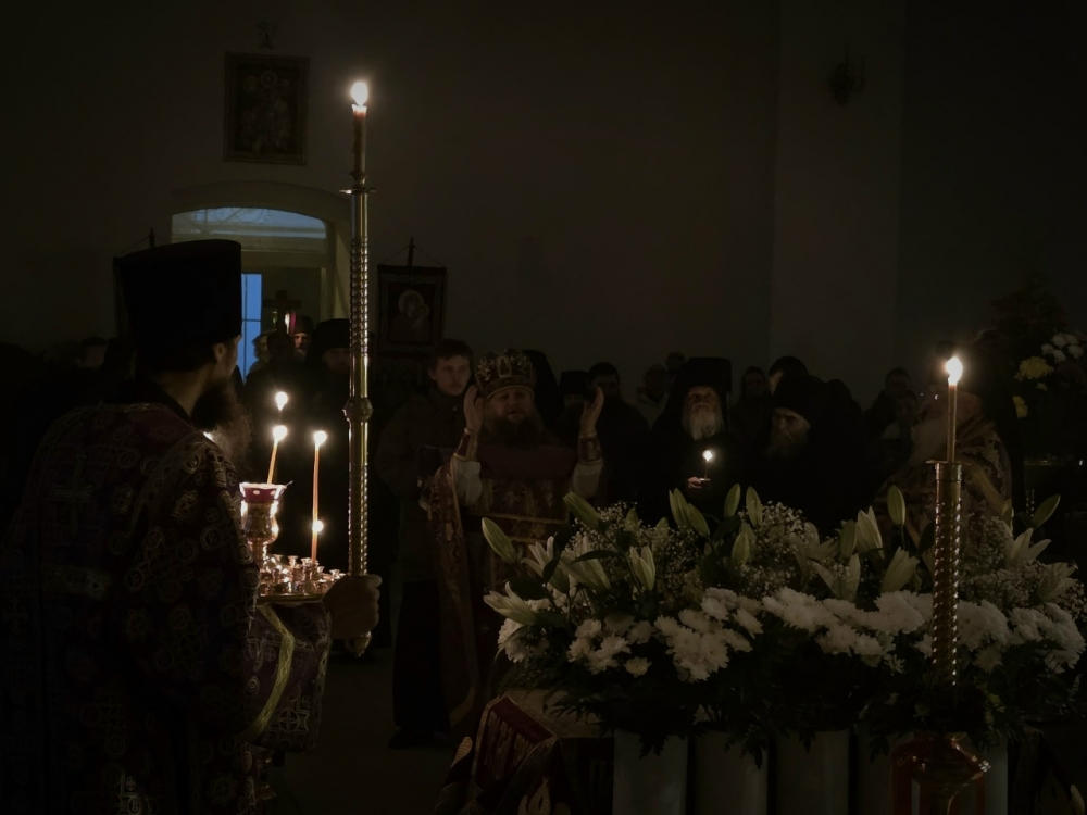 Вечером 10 апреля, в канун Великой Субботы, в Свято-Георгиевской обители совершили утреню с чином погребения Плащаницы Господа Иисуса Христа.