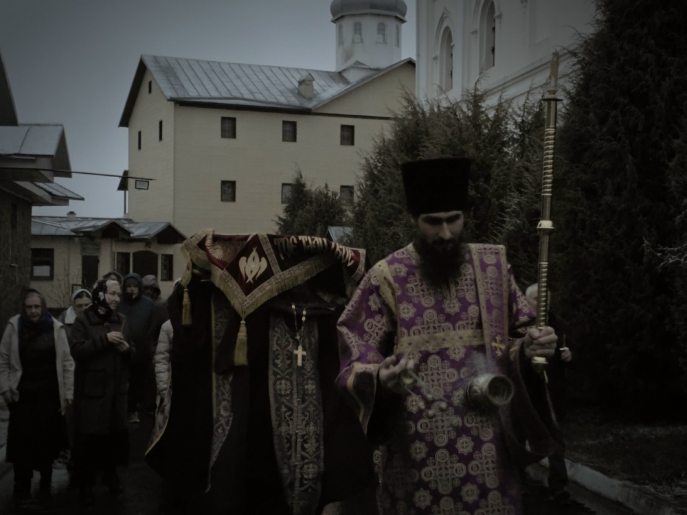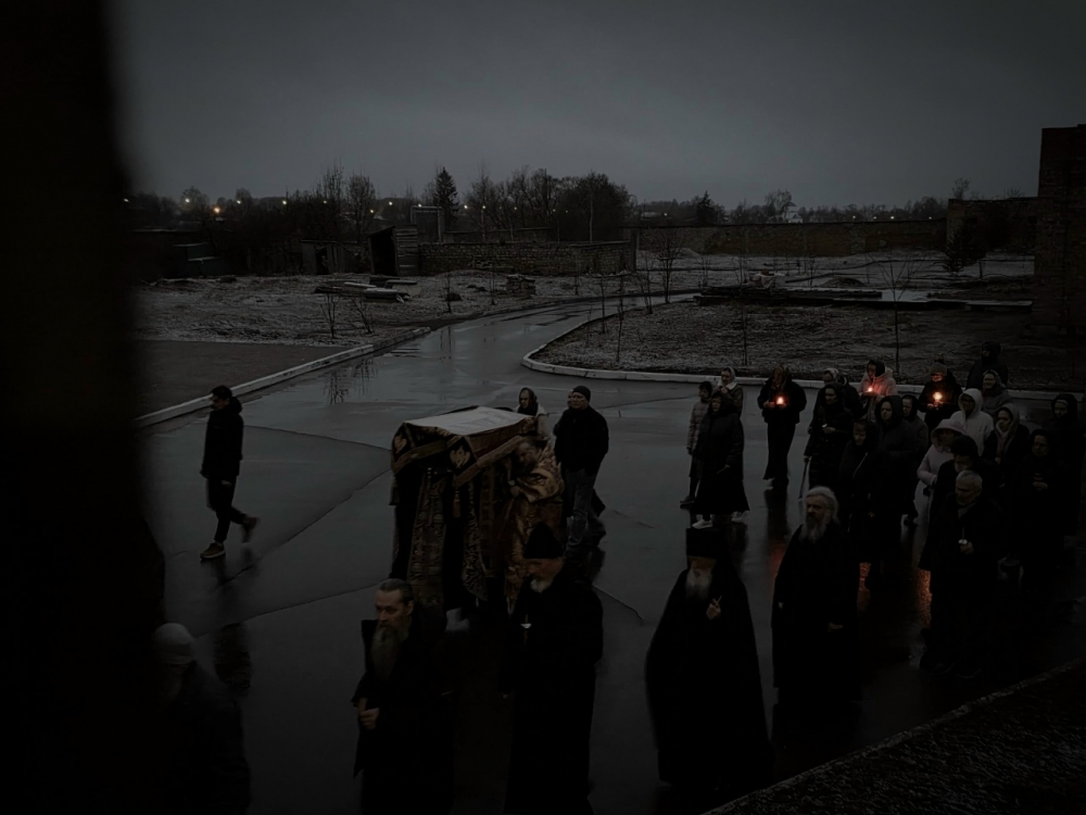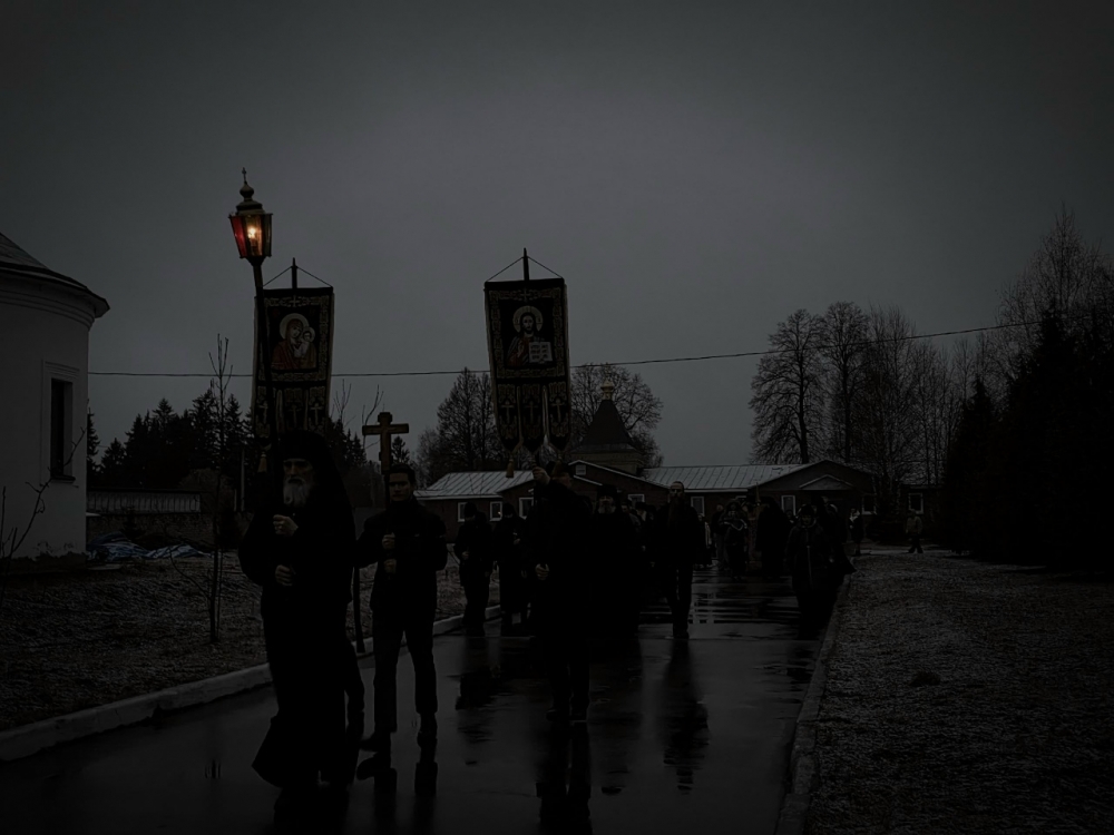 Плащаница Господа Иисуса Христа Крестным ходом была обнесена по территории монастыря под погребальные удары колокола и пение Трисвятого — «Святый Боже, Святый Крепкий, Святый Безсмертный, помилуй нас…».