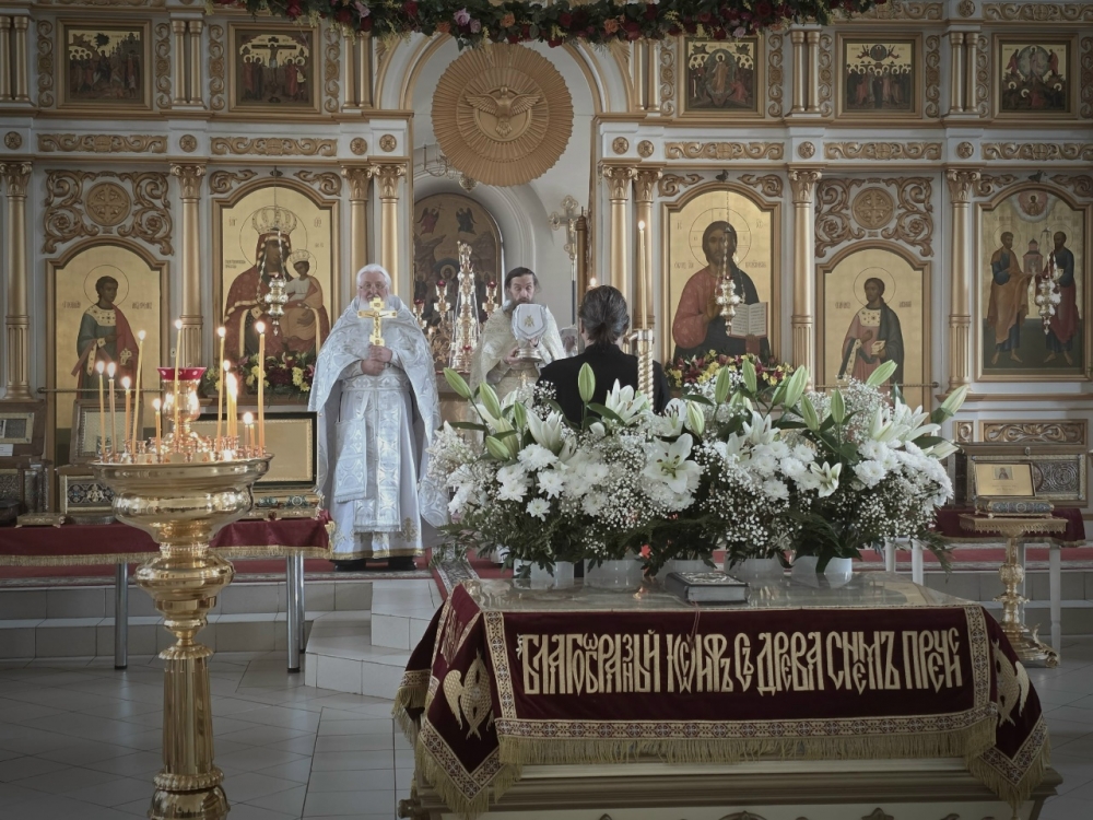 Богослужение совершил иеромонах Варсонофий (Петрушев) в сослужении иеромонаха Савватия (Змеева) и иеродиакона Мелетия (Гришина).