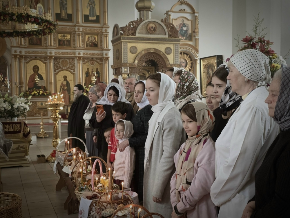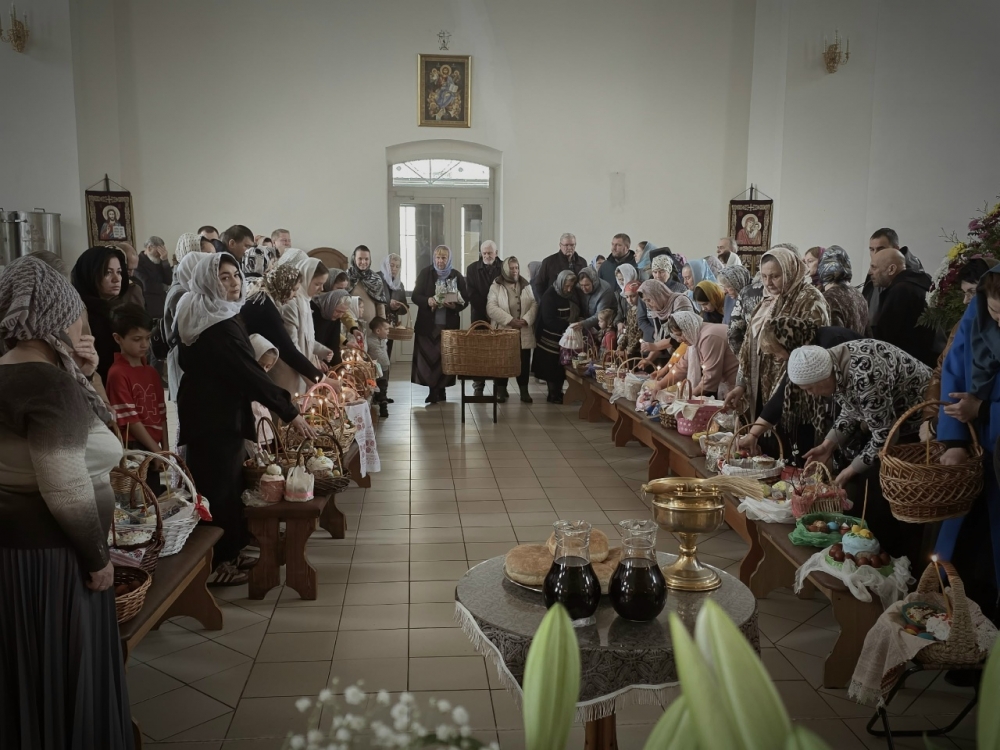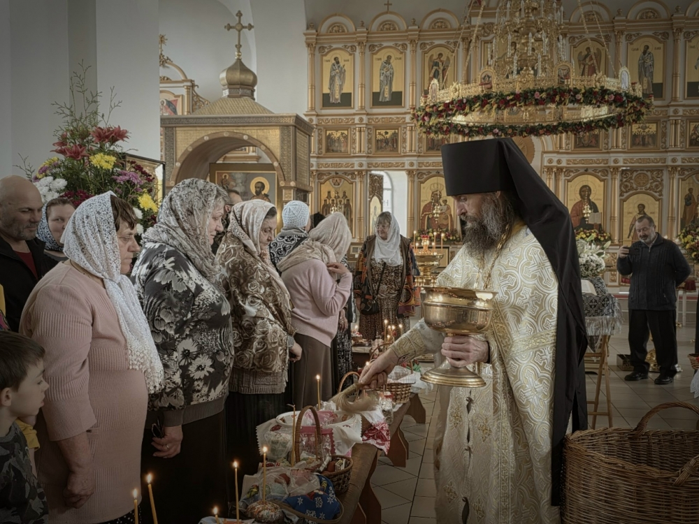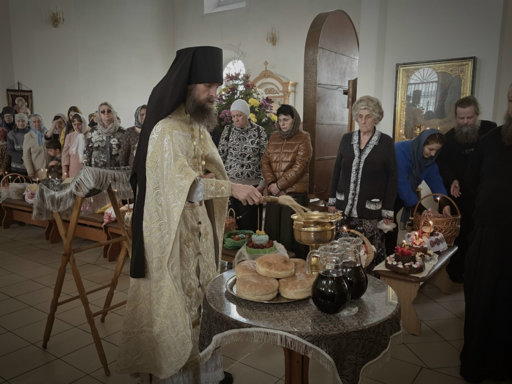 По окончании Литургии состоялось освящение куличей, яиц и других Пасхальных яств.