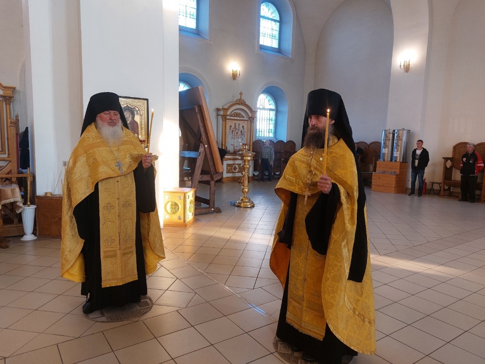 Богослужение возглавил иеромонах Варсонофий (Петрушев) в сослужении иеромонаха Савватия (Змеева) и иеродиакона Мелетия (Гришина).