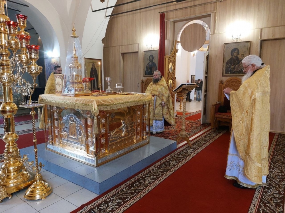 Настоятелю сослужили: иеромонах Варсонофий (Петрушев), иеромонах Савватий (Змеев) и иеродиакон Мелетий (Гришин).