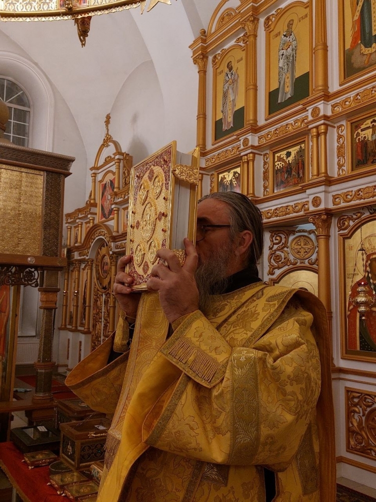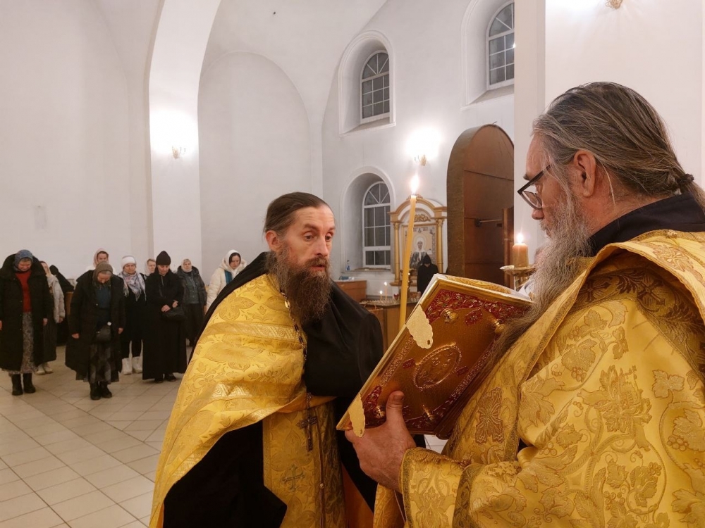 Богослужение совершил иеромонах Варсонофий (Петрушев) в сослужении иеромонаха Савватия (Змеева) и иеродиакона Григория (Фонского).