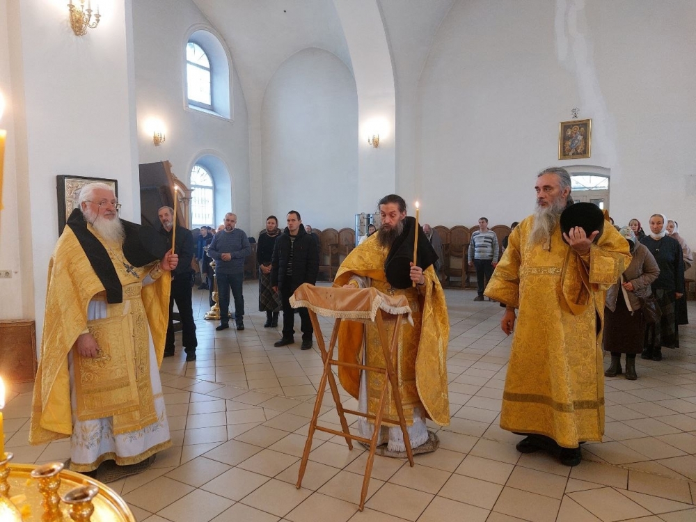Богослужение совершил иеромонах Варсонофий (Петрушев) в сослужении иеромонаха Савватия (Змеева) и иеродиакона Григория (Фонского).